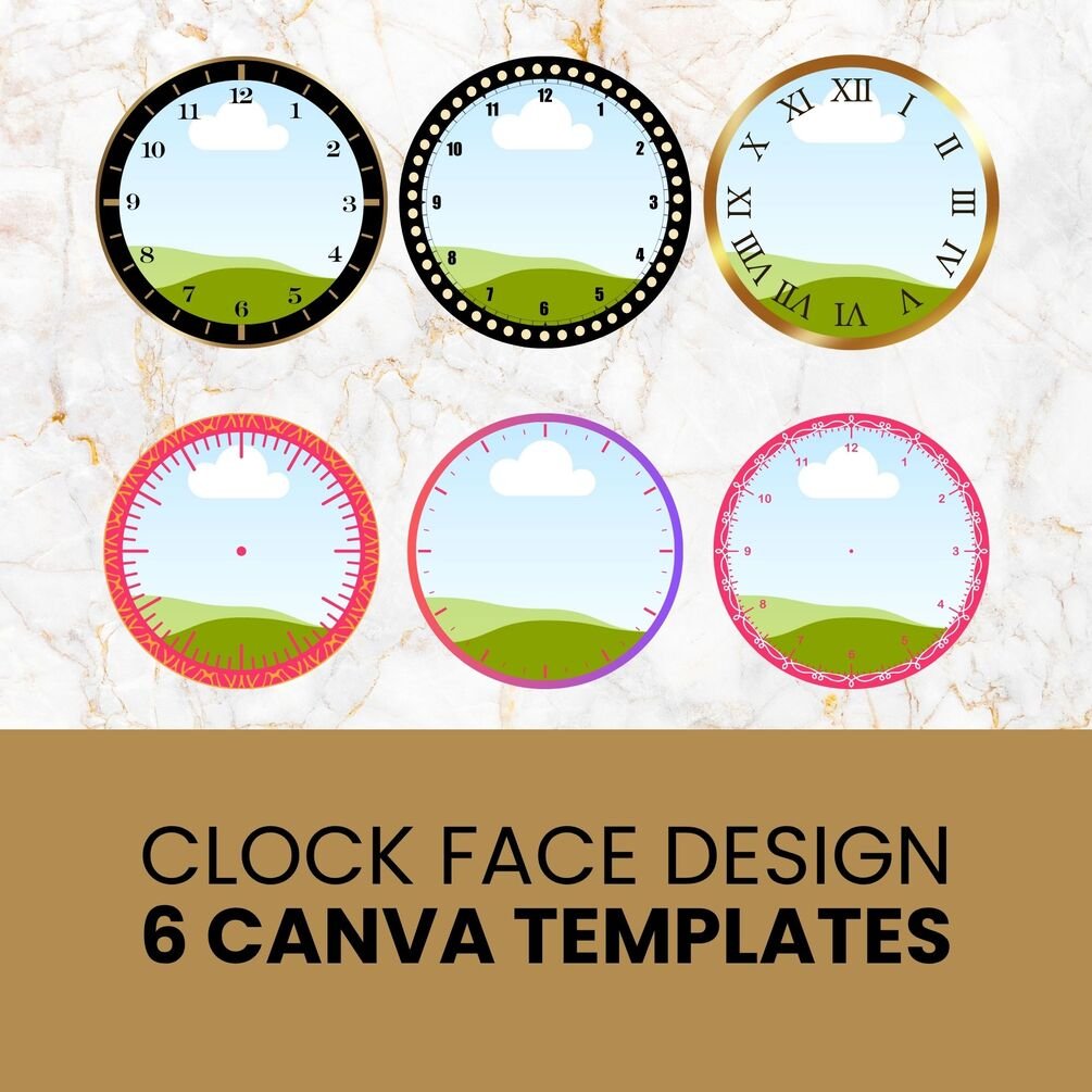 Clock Face Canva Templates – 6 Editable A4 Designs for Personalized Wall Decor & DIY Crafts