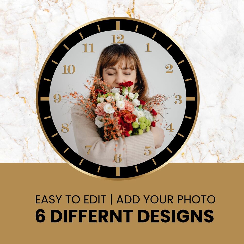 Make your home decor truly personal with this Clock Face Canva Template Bundle! Featuring 6 unique A4-sized designs, these templates are perfect for creating custom wall clocks, craft projects, or printable art that showcase your favorite memories.